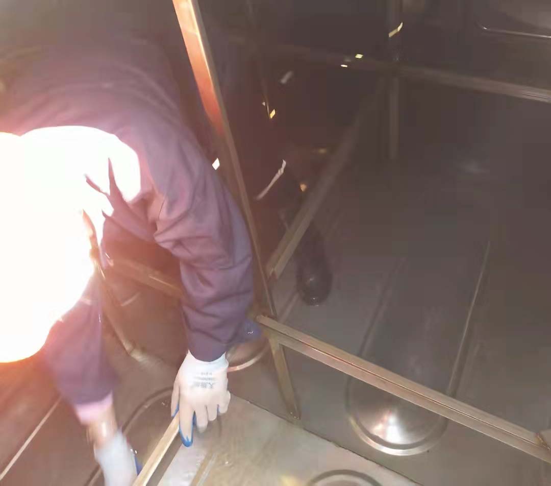 在清洗水箱的過程中,消毒人員須帶護眼鏡、口罩,如在水箱內感到